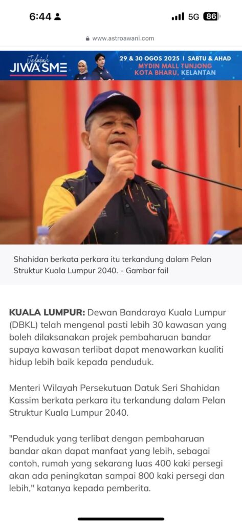 Antara yang ditolak termasuk RUU Pembangunan Semula Bandar (Urban Renewal Act/URA) yang dirangka untuk membela puluhan ribu keluarga bandar yang mendiami flat uzur. Beliau menjelaskan, dakwaan kononnya URA akan menindas pemilik asal tidak benar sama sekali kerana undang-undang itu menjamin pampasan adil, pemilikan unit baharu secara 1 lawan 1, dan perlindungan hak tanah.