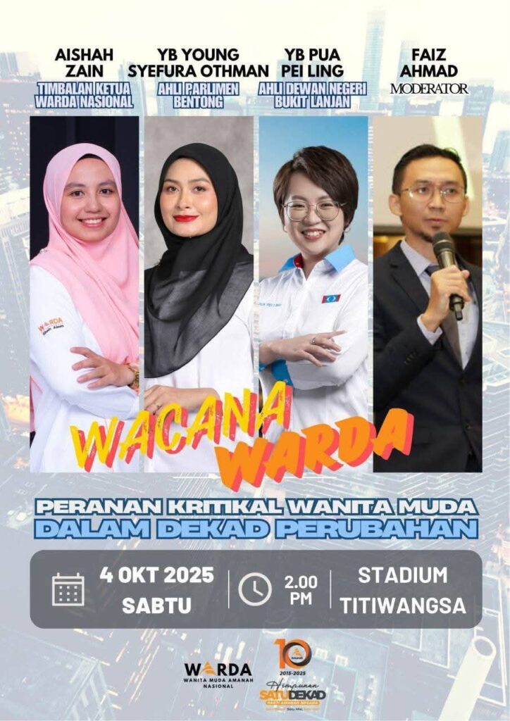 Beliau turut menegaskan komitmen WARDA untuk memperkukuh advokasi wanita muda, termasuk melalui media sosial sebagai medan baharu menyuarakan pandangan dan perjuangan mereka.